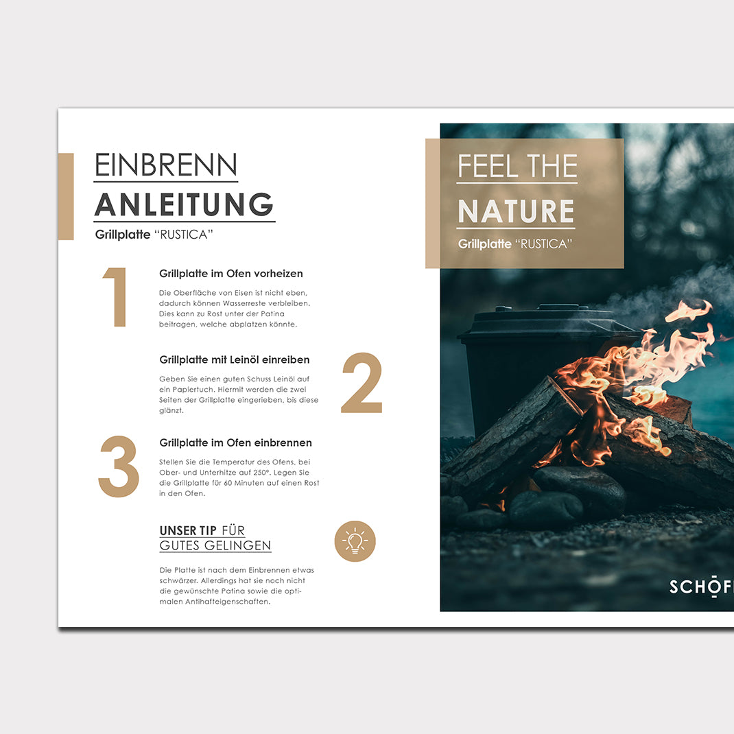 Jeder Bestellung liegt ein Produktflyer sowie eine ausführliche Anleitung zum "Einbrennen" anbei.